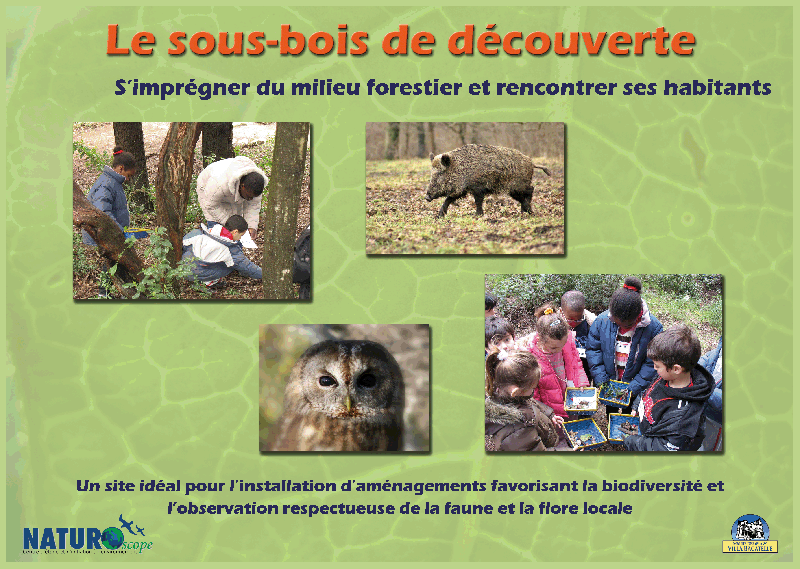 - Un sous-bois de découverte avec son sentier botanique, ses nichoirs, ses hôtels à insectes ou à hérissons… Le sous-bois