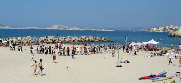 Matin : ateliers successifs (sauvetage sportif, randonnée palmée, jeux sur l'apprentissage de la protection de l'environnement).
